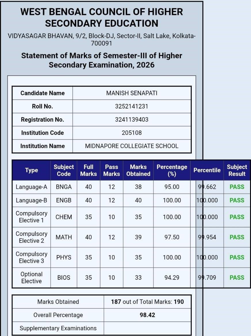 Educhem Coaching Centre-āĻāϰ āĻ›āĻžāĻ¤ā§āϰ āĻŽāĻŖā§€āĻļ āϏ⧇āύāĻžāĻĒāϤāĻŋ āφāϜ āĻŽā§‡āĻĻāĻŋāύ⧀āĻĒ⧁āϰ āϤāĻĨāĻž āϏāĻŽāĻ—ā§āϰ āĻĒāĻļā§āϚāĻŋāĻŽāĻŦāĻ™ā§āϗ⧇āϰ āĻļāĻŋāĻ•ā§āώāĻžāϜāĻ—āϤ⧇āϰ āĻ—āĻ°ā§āĻŦāĨ¤ āϏāĻŽā§āĻĒā§āϰāϤāĻŋ āĻĒā§āϰāĻ•āĻžāĻļāĻŋāϤ Higher Secondary 3rd Semester Examination-āĻāϰ āĻĢāϞāĻžāĻĢāϞ⧇ āĻŽāĻŖā§€āĻļ āϰāĻžāĻœā§āϝāĻ¸ā§āϤāϰ⧇ āϚāϤ⧁āĻ°ā§āĻĨ āĻ¸ā§āĻĨāĻžāύ āĻ…āĻ°ā§āϜāύ āĻ•āϰ⧇āϛ⧇āĨ¤